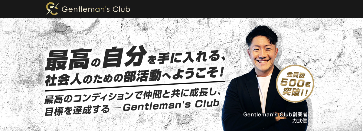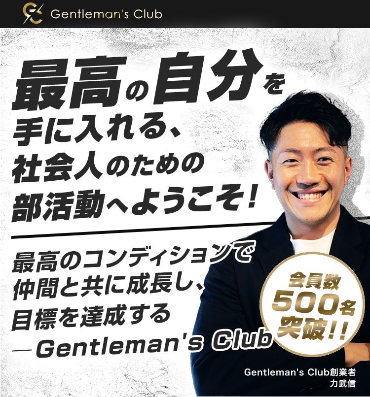 最高の自分を手に入れるためのコミュニティへようこそ!Gentleman’s Clubとは、高い自己成長を目指す、すべてのビジネスマンのためのオンラインコミュニティです。健康知識の向上、朝活の習慣化、そしてハイレベル&高テストステロンな仲間との交流などを通じて、あなたをTOP1%の男に引き上げます 。