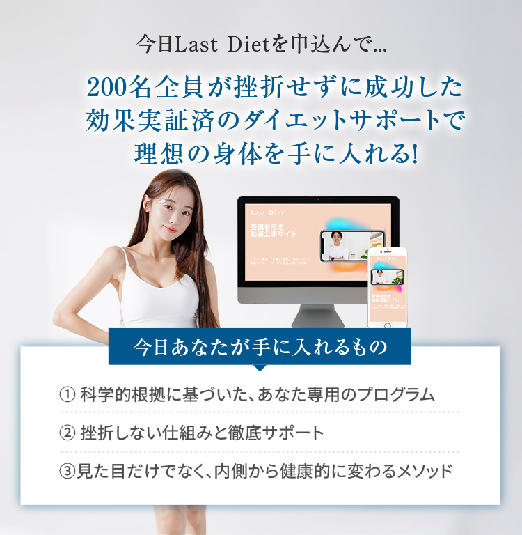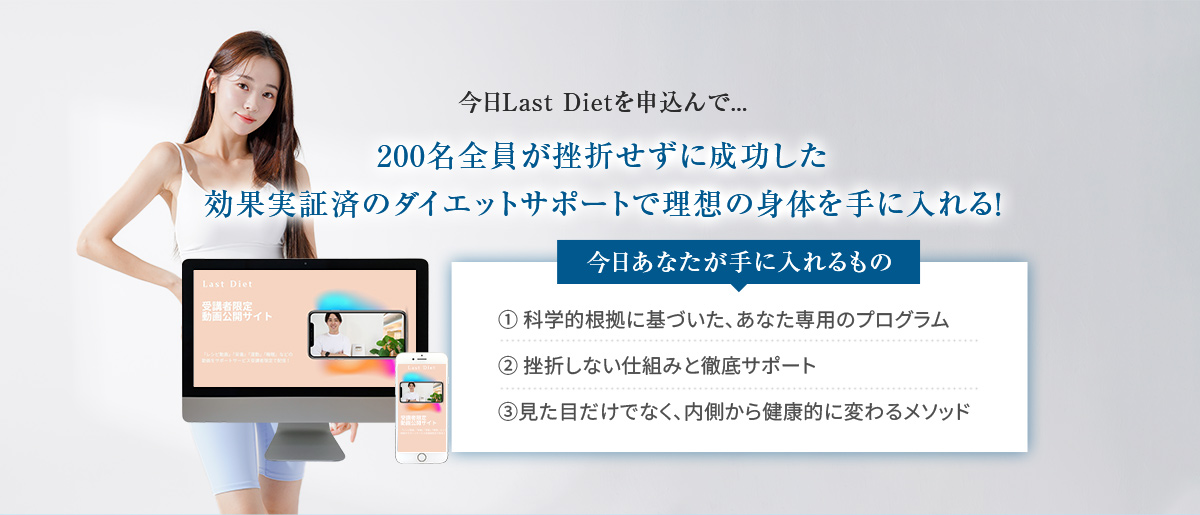 そして、もう1つの道は、Last Dietを受講して、ダイエットのプロが常に伴走してくれて、