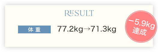 実際に3ヶ月で77.2kgから71.3kgまで5.9kg痩せることができ、周りからもたくさん「痩せたね!」と言ってもらえるようになりました!